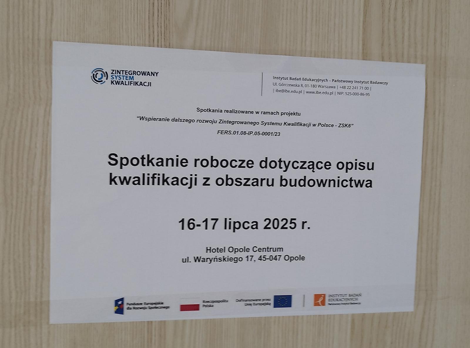 W dniach 16–17 lipca 2025 r. w Opolu odbyło się spotkanie zespołu roboczego poświęcone opracowaniu kwalifikacji sektorowej dotyczącej wykonywania dociepleń na budynkach wzniesionych w technologii wielkopłytowej. Wydarzenie zorganizowano w ramach projektu utworzenia Branżowego Centrum Umiejętności w dziedzinie wykończenia wnętrz w Nysie i odbyło się pod patronatem Instytutu Badań Edukacyjnych (IBE).