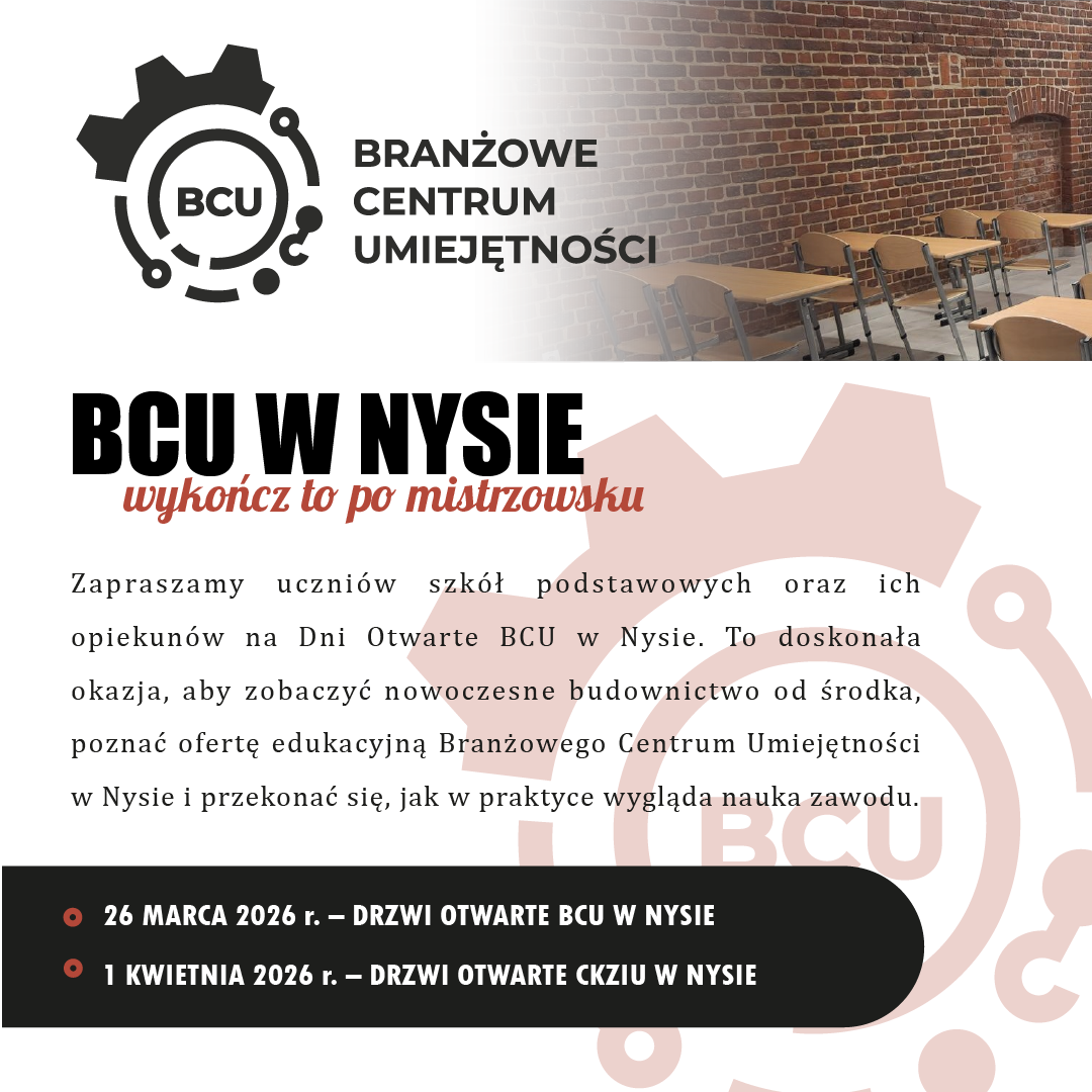 Branżowe Centrum Umiejętności w Nysie kojarzy się przede wszystkim z nowoczesnym kształceniem zawodowym, budownictwem i praktyczną nauką zawodu. Równie ważne jest jednak to, że BCU otwiera się także na młodych ludzi, którzy dopiero zaczynają myśleć o swojej przyszłości. Właśnie temu służyły lekcje otwarte, które odbyły się 26 marca 2026 r.