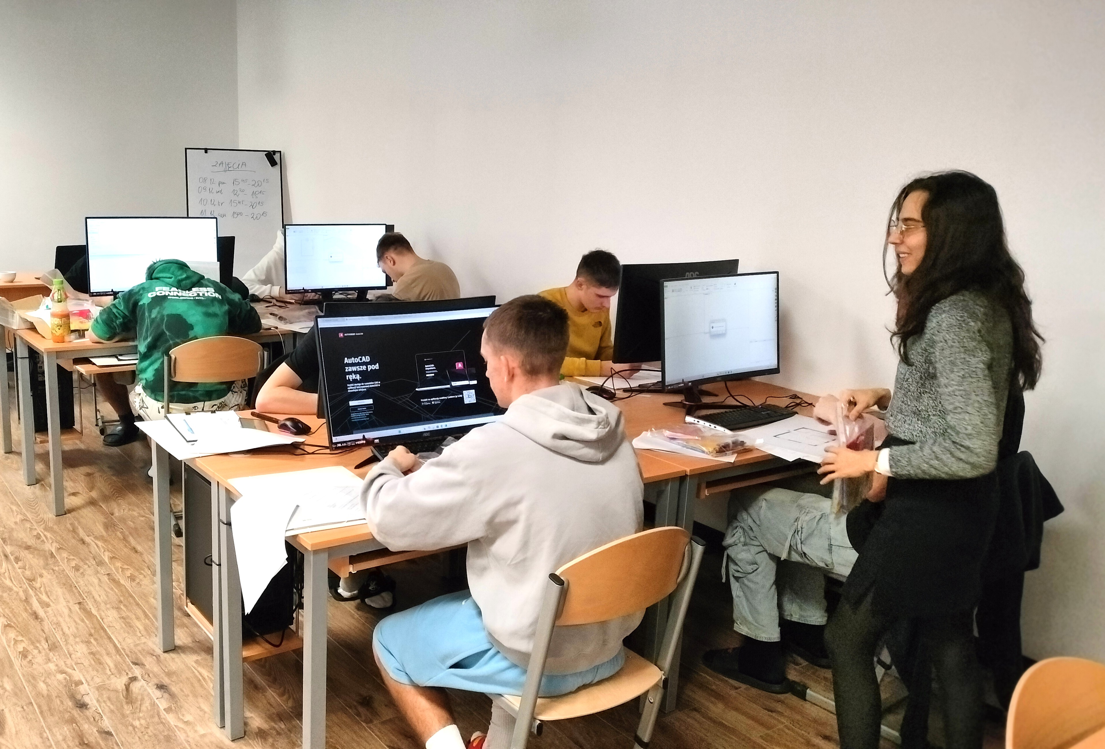 Zakończyliśmy szkolenie dla młodzieży „Projektowanie wykończenia wnętrz za pomocą wybranych programów”. Za nami intensywny, bardzo praktyczny cykl zajęć, podczas których uczestnicy krok po kroku przechodzili przez proces tworzenia koncepcji wnętrza. W trakcie zajęć młodzież poznawała podstawy ergonomii i funkcjonalnego planowania przestrzeni, wykonywała inwentaryzację pomieszczeń, a następnie tworzyła dokumentację 2D w AutoCAD.